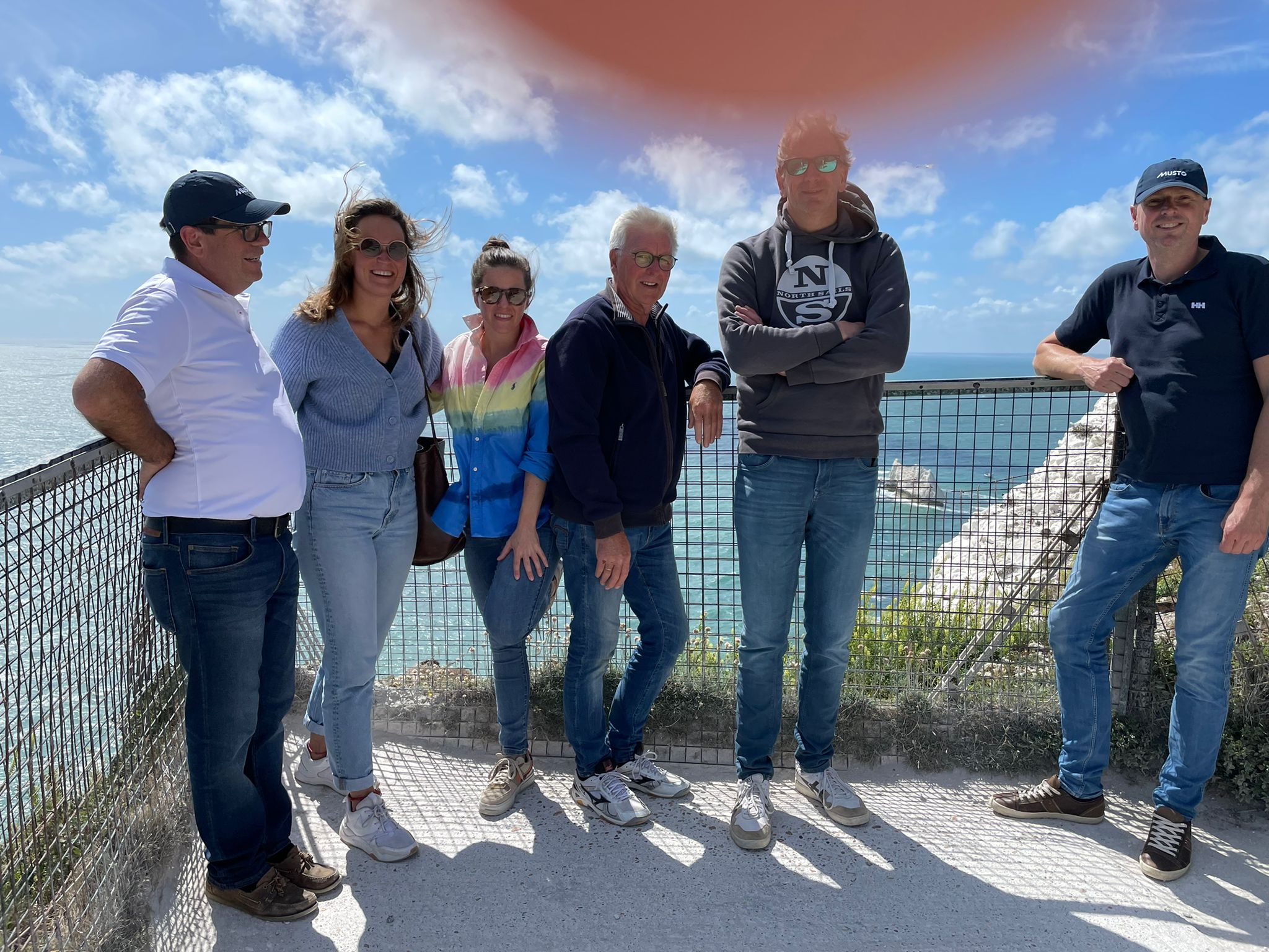 Terug in de haven nog een verdient koud biertje op het terras en daarna de vooraf gemaakte koude pasta aan boord. Zondag maken we met de auto een tour over het eiland, zonnig en een zeer aangename temperatuur. We brengen een bezoek aan de Needles, zodat we het ook eens van bovenaf kunnen zien en lunchen buiten op het terras van dezelfde pub waar we 6 jaar geleden ook hebben gegeten. Deze keer met live muziek. Aan het einde van de dag verhuizen we de inboedel weer terug van de caravan naar de Ondine. Maandag vroeg vertrekken Joost, Johan, Koert en Sophie weer met de auto Red Funnel naar het vaste land en varen wij (Eva en Izaäk) naar Lymington. Daar brengen we een bezoek vaan de werf van Jeremy Rogers waar de Ondine 48 jaar geleden is gebouwd