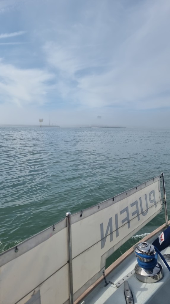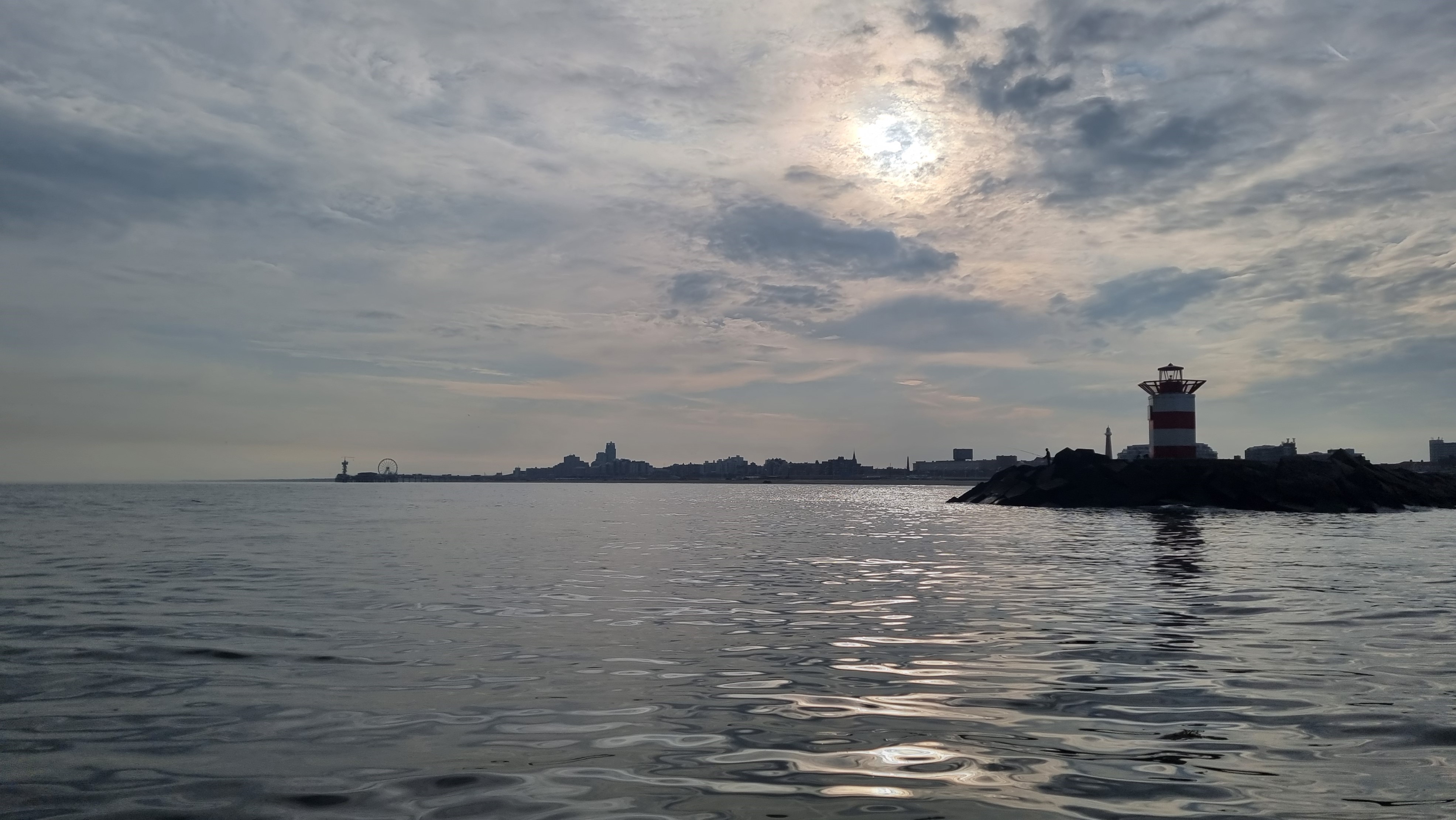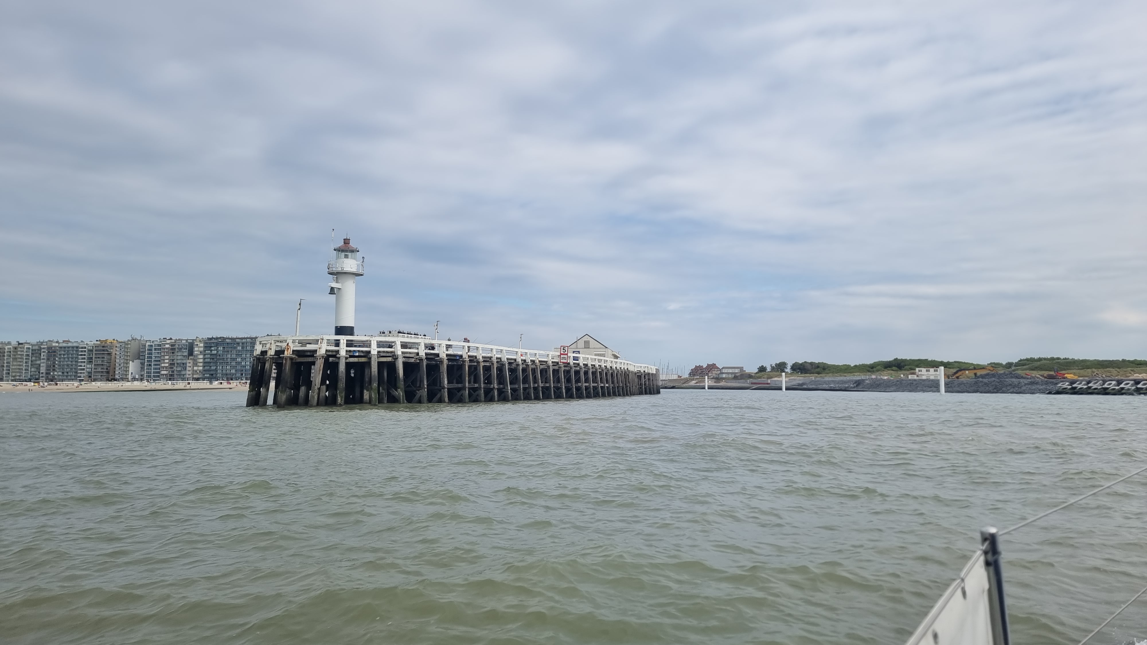 De volgende dag besluiten we gelijk door te pakken en weer los te maken, nu op weg naar Nieuwpoort. De wind is absent en alweer varen we op de motor. Niet echt wat we ons erbij voorgesteld hadden, maar aangezien er totaal geen wind is, blijft er geen alternatief. En zolang de condities het toelaten, willen we Zuidelijk varen. Van Oostende zien we vrijwel niets: een hardnekkige mistbank komt snel aan over zee en hult de stad in een nevel waardoor we niets kunnen zien. We hebben hiervoor altijd met papieren kaarten gevaren en een ouder model GPS voor de coordinaten. Het navigeren met Navionics op de telefoon en tablet bevalt echter goed als aanvulling op de papieren kaarten en zeker met de mist is het prettig om sneller de locatie te kunnen duiden.