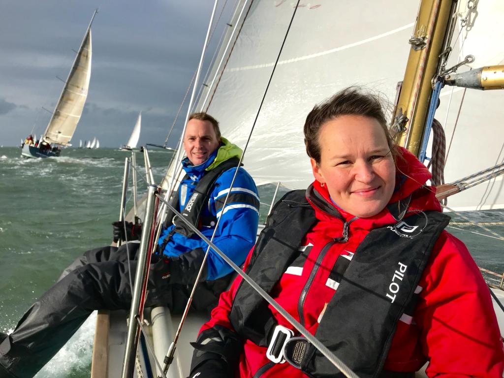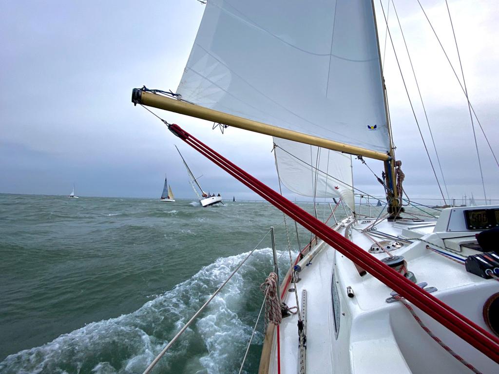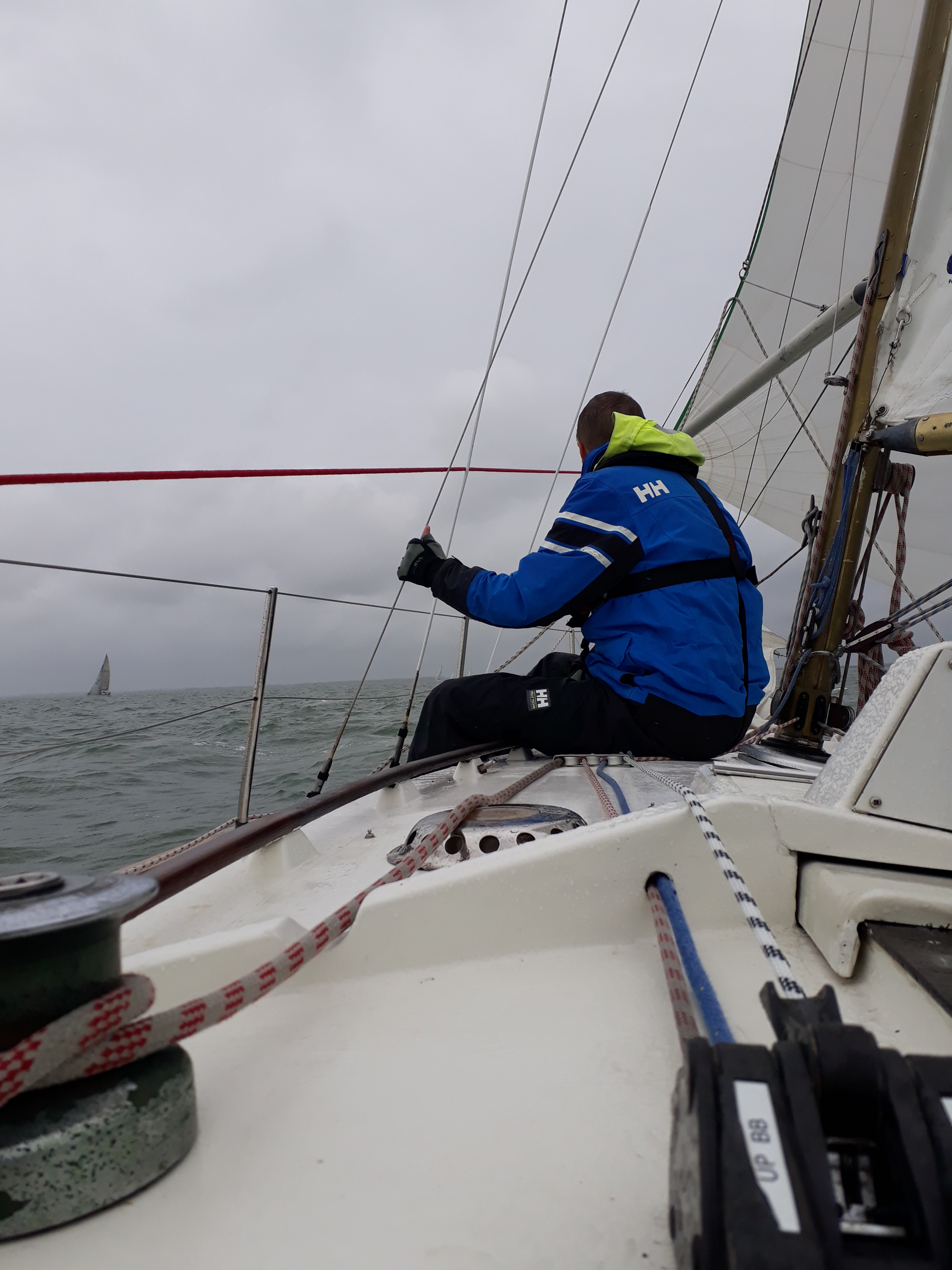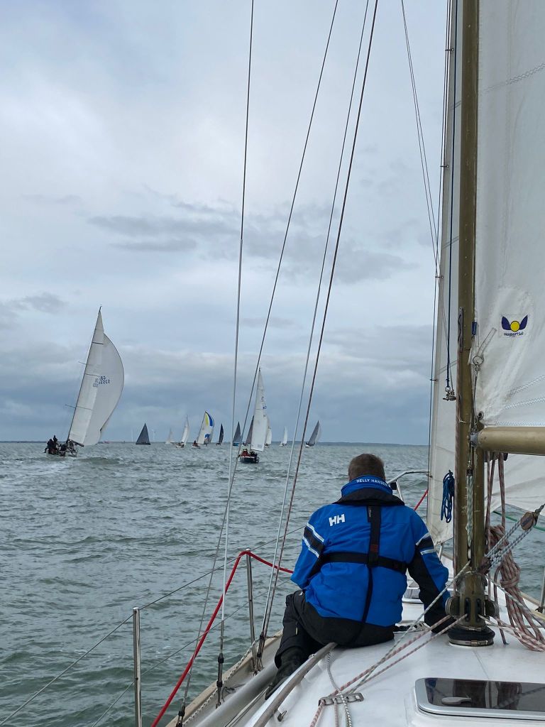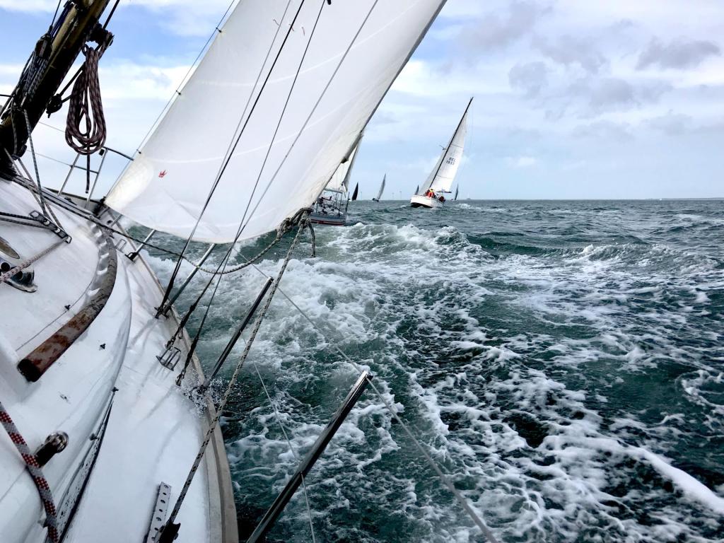 Deze laatste is nieuw in de klasse. Zij wordt bemand door de bemanning van de Lecas. Lecas staat op de kant om gereed gemaakt te worden voor een wedstrijdseizoen in de Solent, met als hoogtepunt de Fastnet 2019. Boeboe gaat iets eerder, maar té vroeg en wordt teruggeroepen. Kruisend naar de SvC11. Die ronden we als 4e. De snellere kleine schepen, Boeboe, Windhapper en Confusion liggen voor ons.