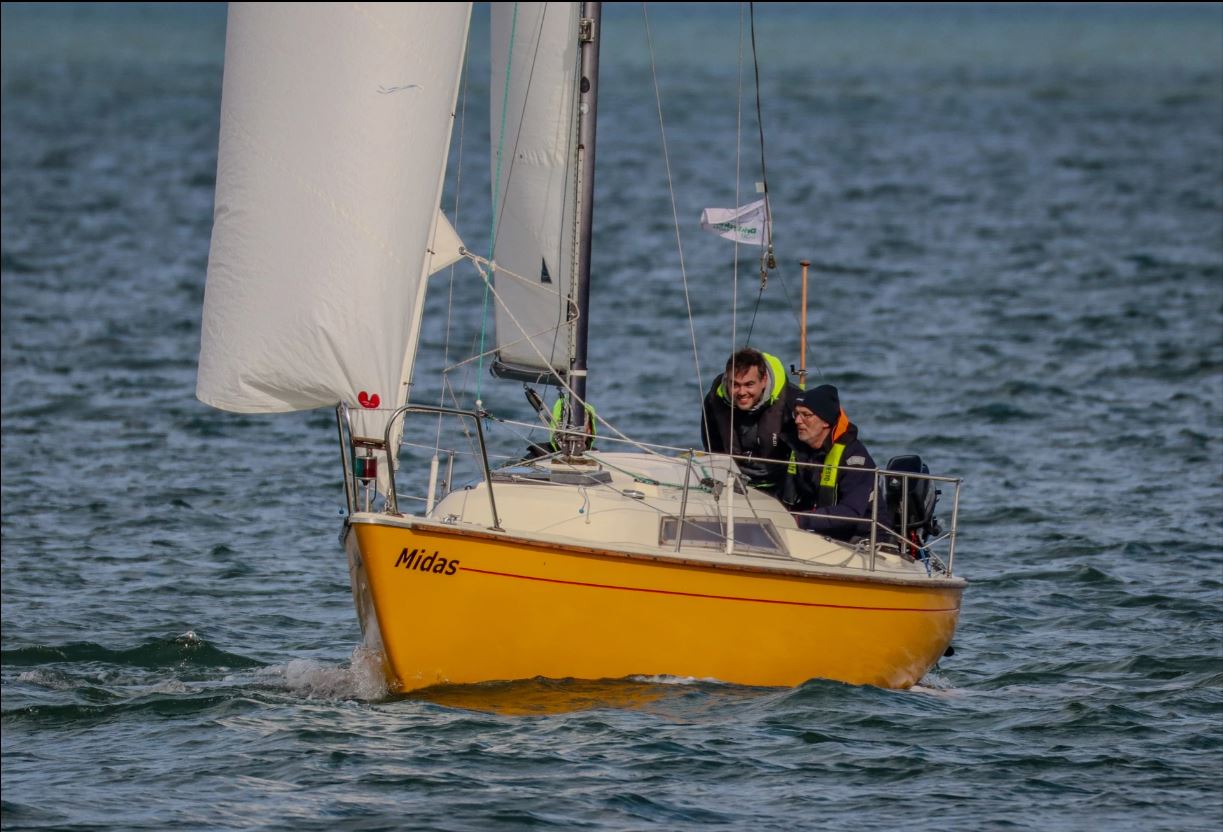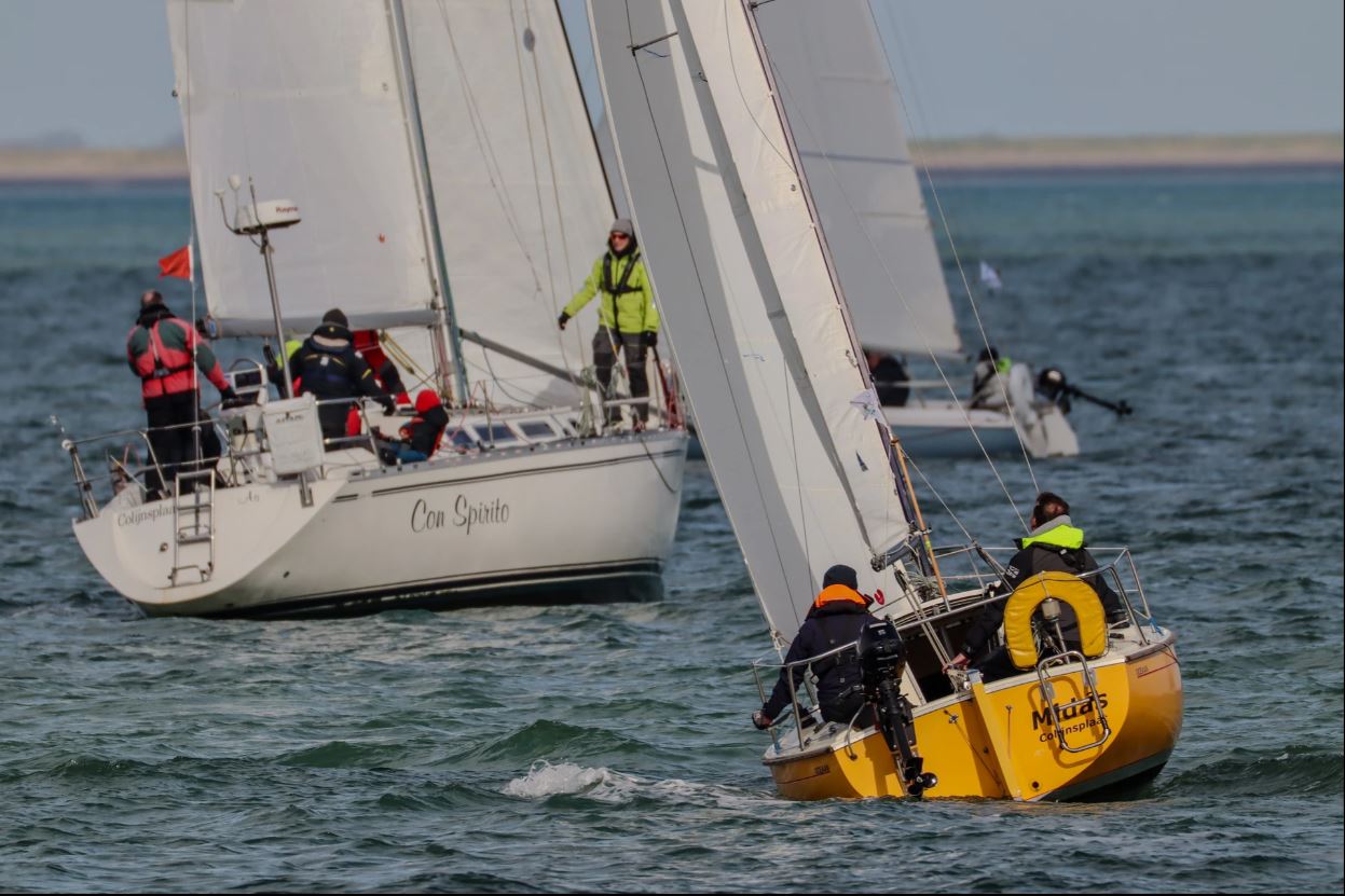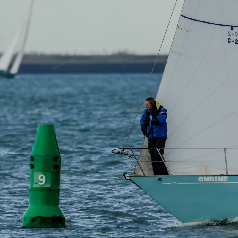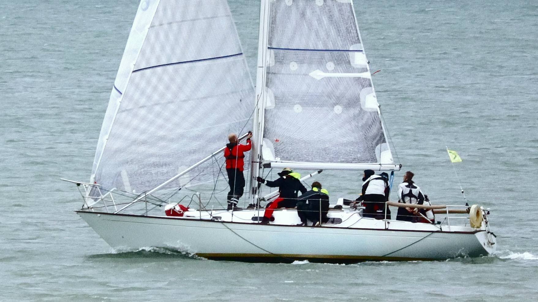 Deze laatste is nieuw in de klasse. Zij wordt bemand door de bemanning van de Lecas. Lecas staat op de kant om gereed gemaakt te worden voor een wedstrijdseizoen in de Solent, met als hoogtepunt de Fastnet 2019. Boeboe gaat iets eerder, maar té vroeg en wordt teruggeroepen. Kruisend naar de SvC11. Die ronden we als 4e. De snellere kleine schepen, Boeboe, Windhapper en Confusion liggen voor ons.