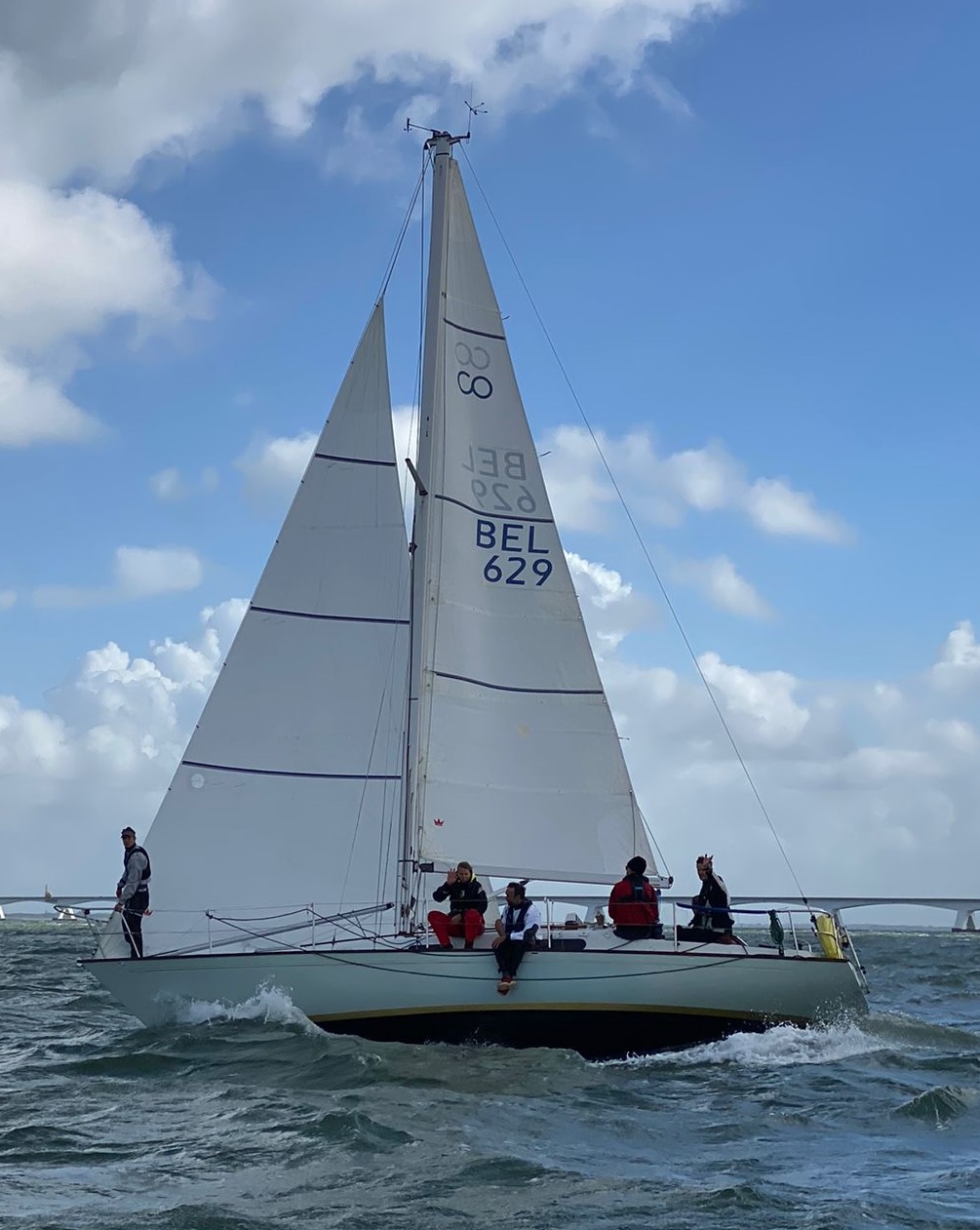 Zaterdagmorgen onderweg in de auto naar Colijnsplaat hebben we nog veel regen. Als we rond 10u aankomen is het vrijwel droog en waait het lang zo hard niet als voorspeld. De andere bemanningsleden melden zich vrij snel op de steiger en we kunnen de boot klaarmaken voor de wedstrijd. We kiezen in eerste instantie voor genua III. Nu eerst koffie met de bekende Belgische koeken. Wel binnen in de kajuit omdat het toch weer begint te regenen. Om half twaalf wordt het weer droog en wordt de III toch gewisseld voor de Genua II. We kennen inmiddels de baan en de eerste rakken zijn geen kruisrakken. Mocht het nodig zijn dan kunnen we tijdens het eerste spinakerrak weer terugwisselen.