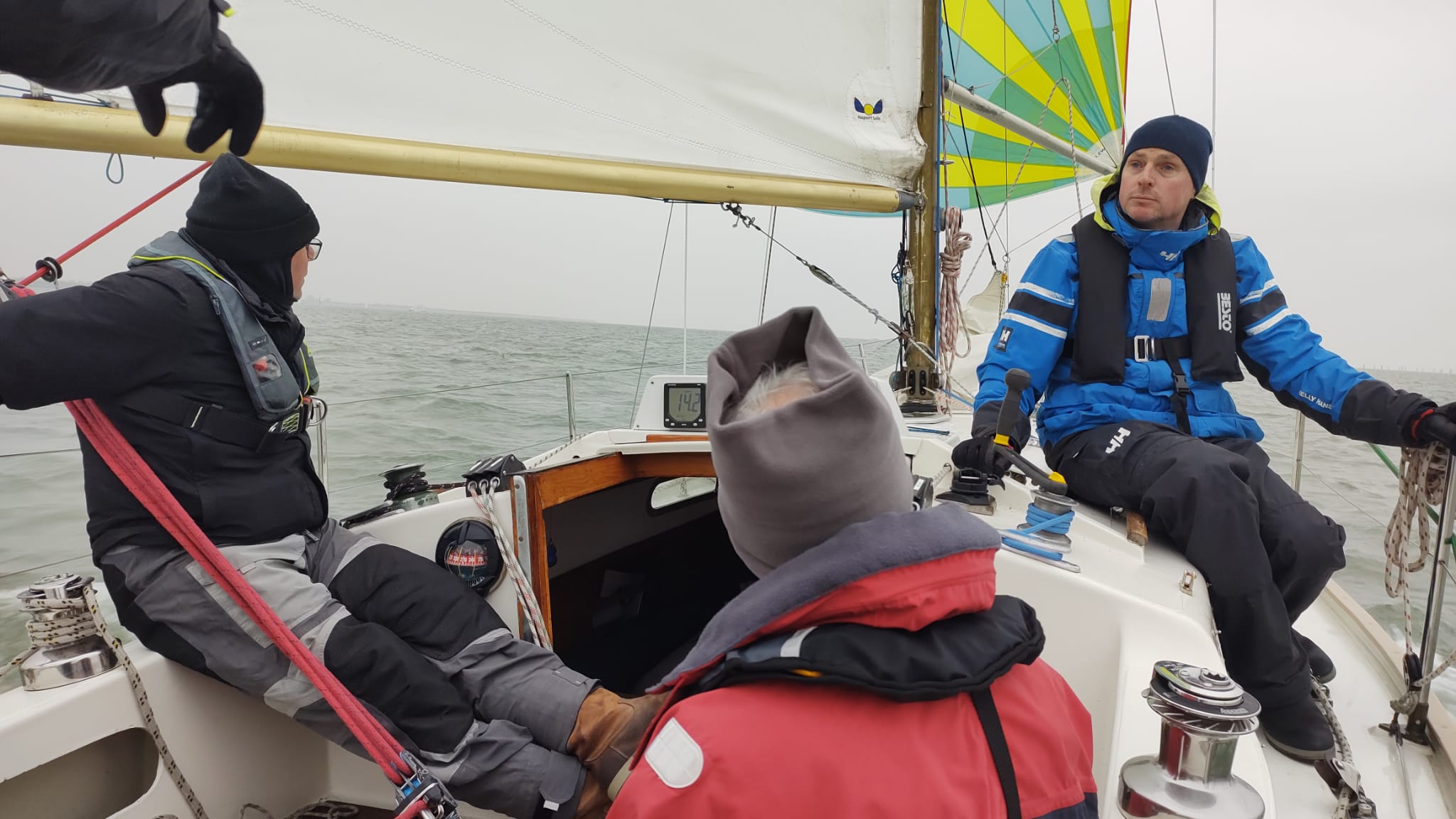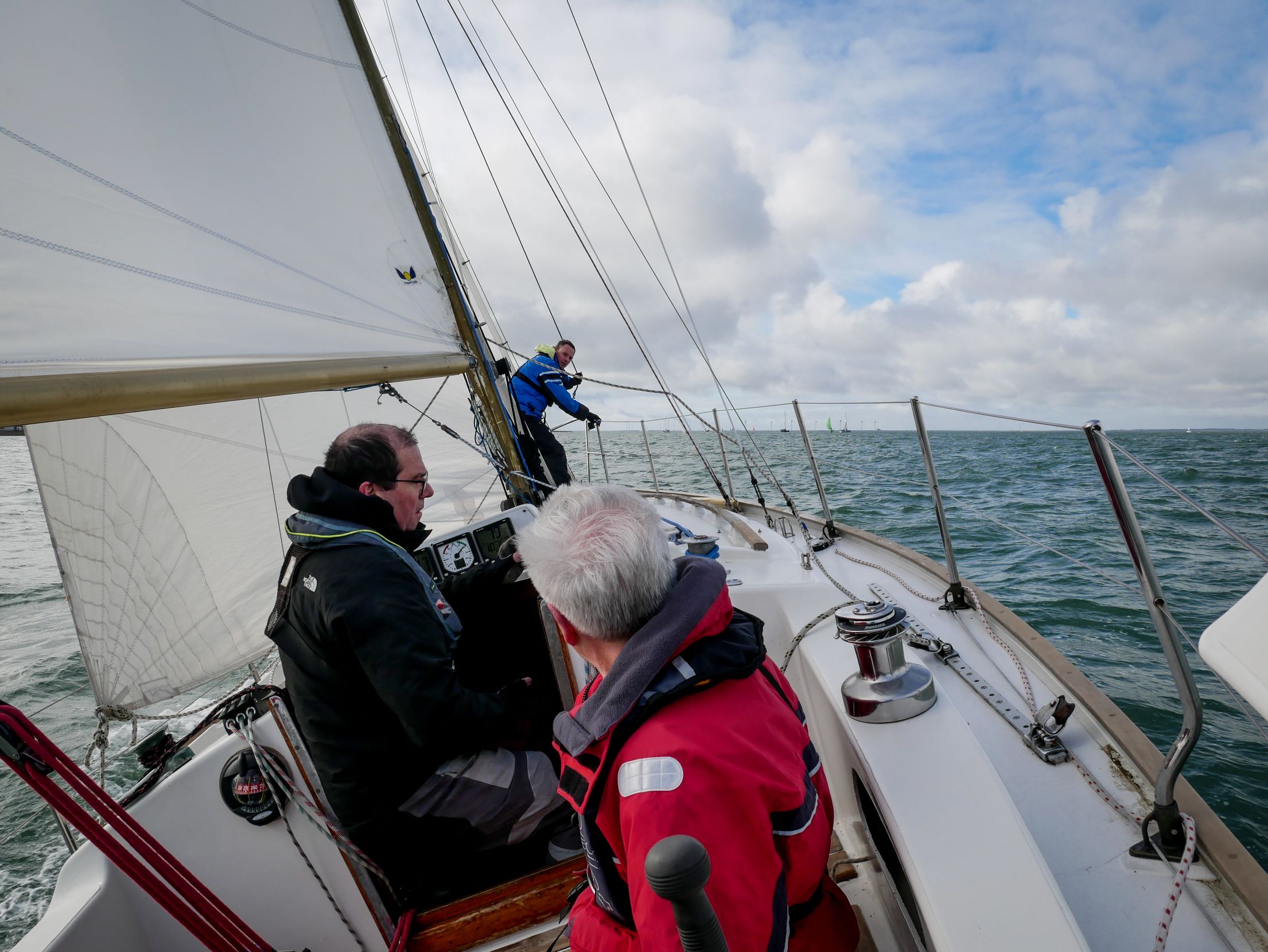 Voorafgaand werd de windvoorspelling goed in de gaten gehouden. Er werd tot 22 knts voorspeld. Maar het werd een mooi lopend windje tot 15 knts en niet te koud maar zeker niet te warm.