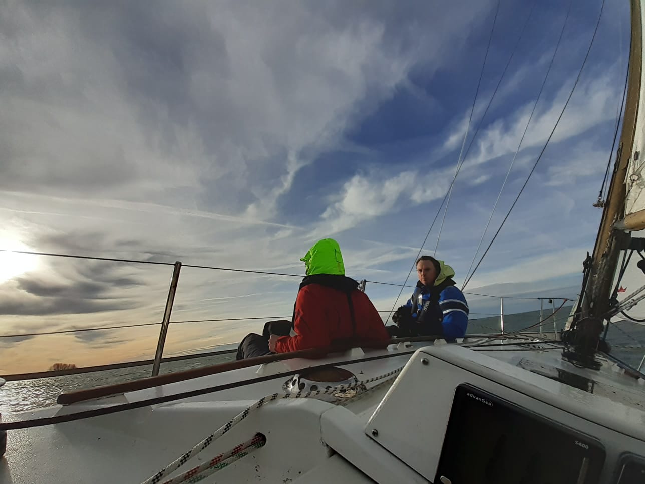 Spi droppen en in 1 slag richting R27. Dan weer een spi rak naar R40. “Vintage” en “Boeboe” liggen niet ver achter ons, maar moeten voor ons finishen om ons te verslaan op handicap. Respectievelijk ca 2,5 en 7 minuten op een wedstrijd van 2,5uur.