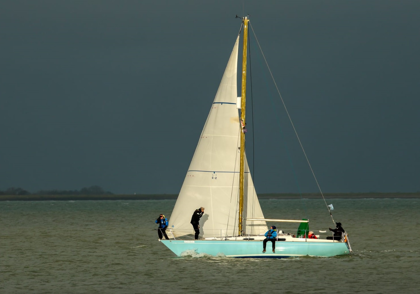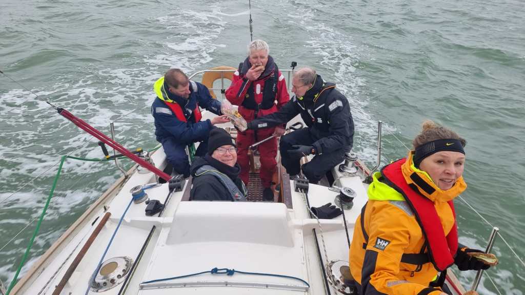 Het Ondine team bestaat vandaag uit vijf personen. Barend, Eva en Joost zijn afwezig, Alexander is erbij als vervanger. Voor de eerste keer aan boord van een Contessa 32, maar met veel wedstrijdzeilervaring op andere schepen. Voor zover hij weet heeft hij nog nooit een eerste plaats gevaren. Voor hem een extra stimulans, omdat wij onder deze omstandigheden daar een kans voor maken.