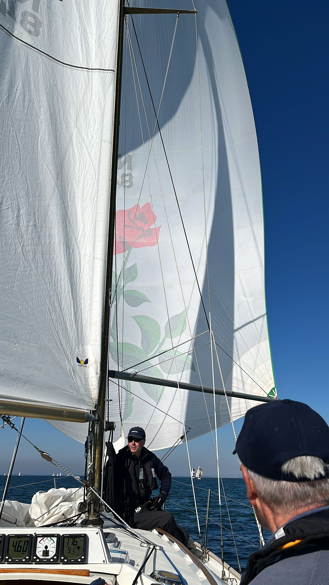 Na R25 weer spi op richting R36-H1. Vintage heeft problemen met de spi en wij ronden de boe als 1e.