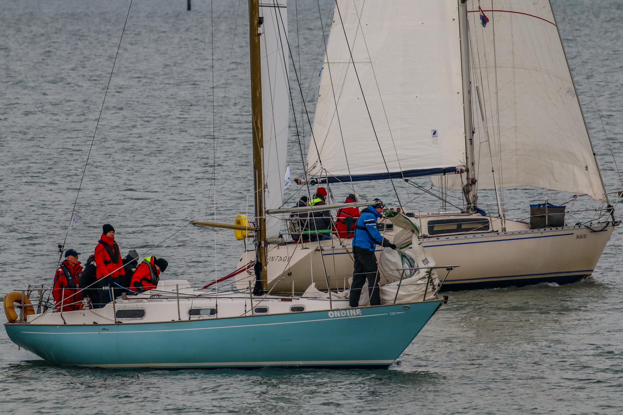 Zaterdagochtend als we in de haven arriveren vriest het nog licht. Er ligt sneeuw aan dek. De voorspelling is dat het rond de middag gaat dooien. Dat is wel te hopen, want als de dekken niet ijsvrij gemaakt kunnen worden gaat de wedstrijd niet door. Alles gaat verder volgens planning en met een uur vertraging (i.v.m. laag water) kunnen we starten. In totaal zijn er toch zo’n 45 schepen aan de start. Windverwachting 14-15 knopen, oost. In onze klasse zijn er 9 schepen, waaronder CO32 Lecas en wij met de Ondine. Start met tij tegen. Het eerste korte rak naar SVC10 is kort en we twijfelen of we de Spi zullen trekken. Lecas, die kort voor ons is gestart doet het niet. Wij dus ook niet. Foute beslissing, want zij hadden een probleem met de spinakerval, zo hoorden wij later. Na de SVC10 aan de wind richting Zeelandbrug. Lecas, Farther Bruin (1/2 tonner) en Hygieina (Sagitta 35) lopen iets uit, maar wij maken geen fouten. Wij houden de lichtere schepen zoals BoeBoe (First class 7) en Windhapper (Dehler 25) achter ons. Bakboord uit naar OZ1, daar spi omhoog voor een rondje plaat (rak van 5NM). De wind trekt soms aan tot 23 knopen. Bij de benedenboei zijn Lecas en Hygieia niet echt op ons uitgelopen. Boeboe en Windhapper zijn ons wel gepasseerd. We liften nog enige tijd mee op de hekgolf van de Windhapper. Na de benedenboei weer aan de wind/tij mee richting SVC11. De laatste boei voor de finish. De wind blijft flink doorzetten in kracht. We hebben te veel zeil op. We hadden de Genua 1 moeten wisselen voor Genua 2. Bij de SVC11 liggen we nog altijd 4 en gaat de spi weer omhoog. Dan slaat het noodlot toe. Het beslag wordt uit de spinakerboom gerukt en we moeten de spinaker weer binnenhalen. Op grootzeil en genua 1 wordt het laatste rak voltooid. Erg jammer, want later blijkt dat het verschil tussen P.1 (Lecas) en P.4 (Ondine) slechts 1 min 20 sec is (op gecorrigeerde tijd) Een uitdaging dus voor de laatste wedstrijd 7 april.