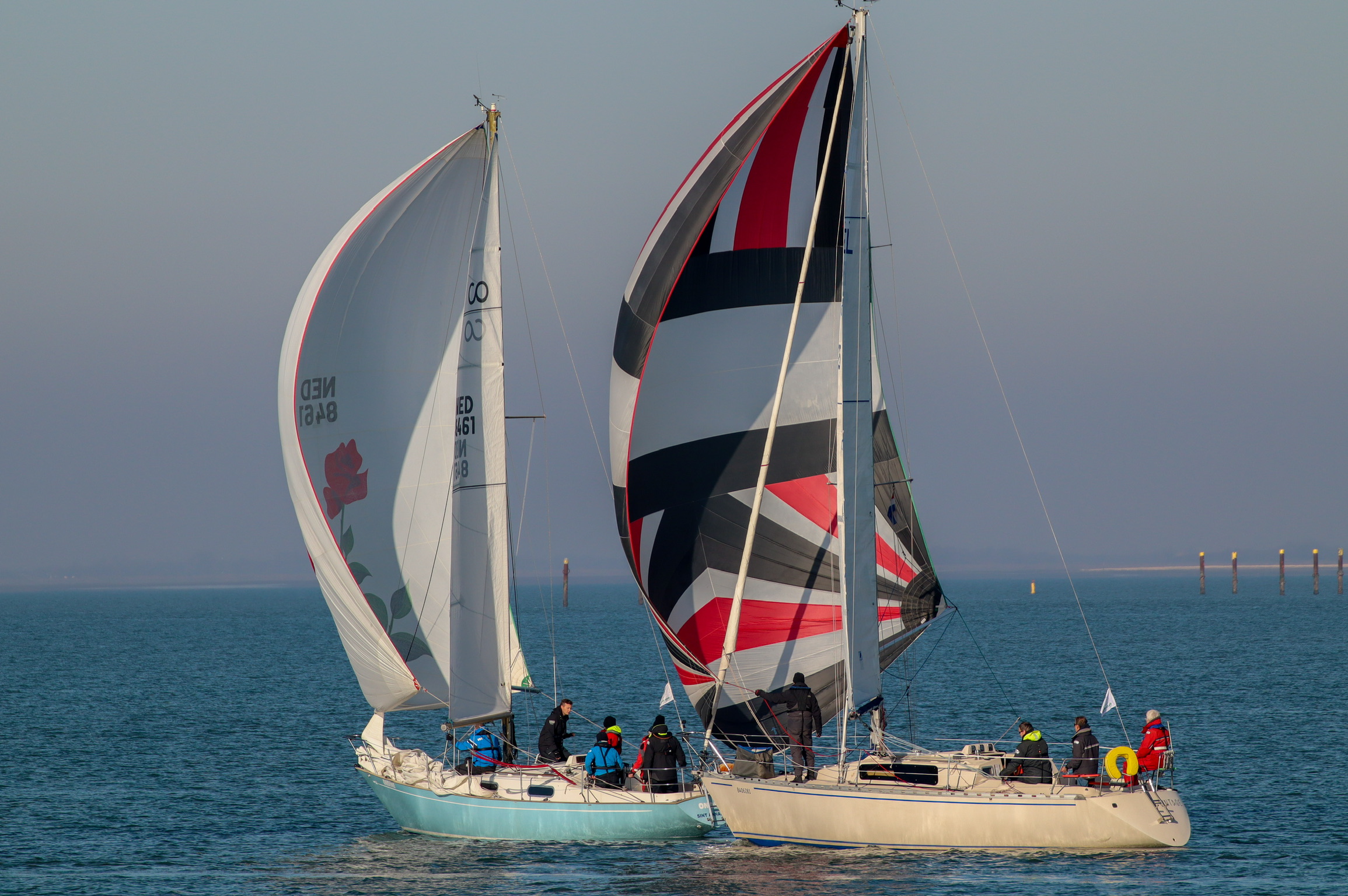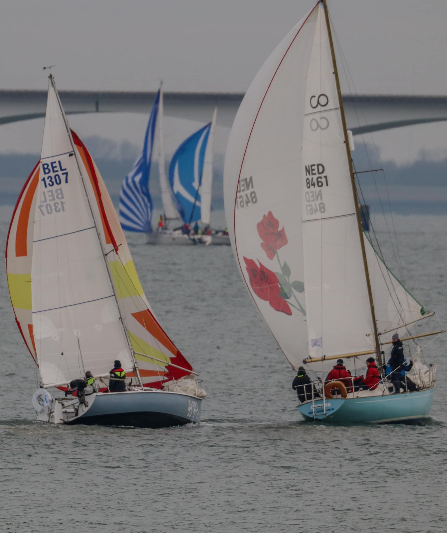 De Contessa 32 “Lecas” en de Contessa 26 “Bijou” . Voor wie niet bekend is met deze winterwedstrijden vooraf enige uitleg. Alhoewel er best fanatiek gezeild wordt is het toch bedoeld als gezelligheidswedstrijd. Er wordt, als het weer het maar enigszins toelaat, elke eerste zaterdag van de maand gevaren, van oktober t/m april . Één wedstrijd per dag. De start en finish zijn vóór Colijnsplaat (Oosterschelde) Er worden verschillende banen uitgezet voor de diverse klassen (ORC/IRC 1, ORC/IRC 2 en 2 klassen ongemeten) zodanig dat iedereen voor 16:30u terug in de haven kan zijn.