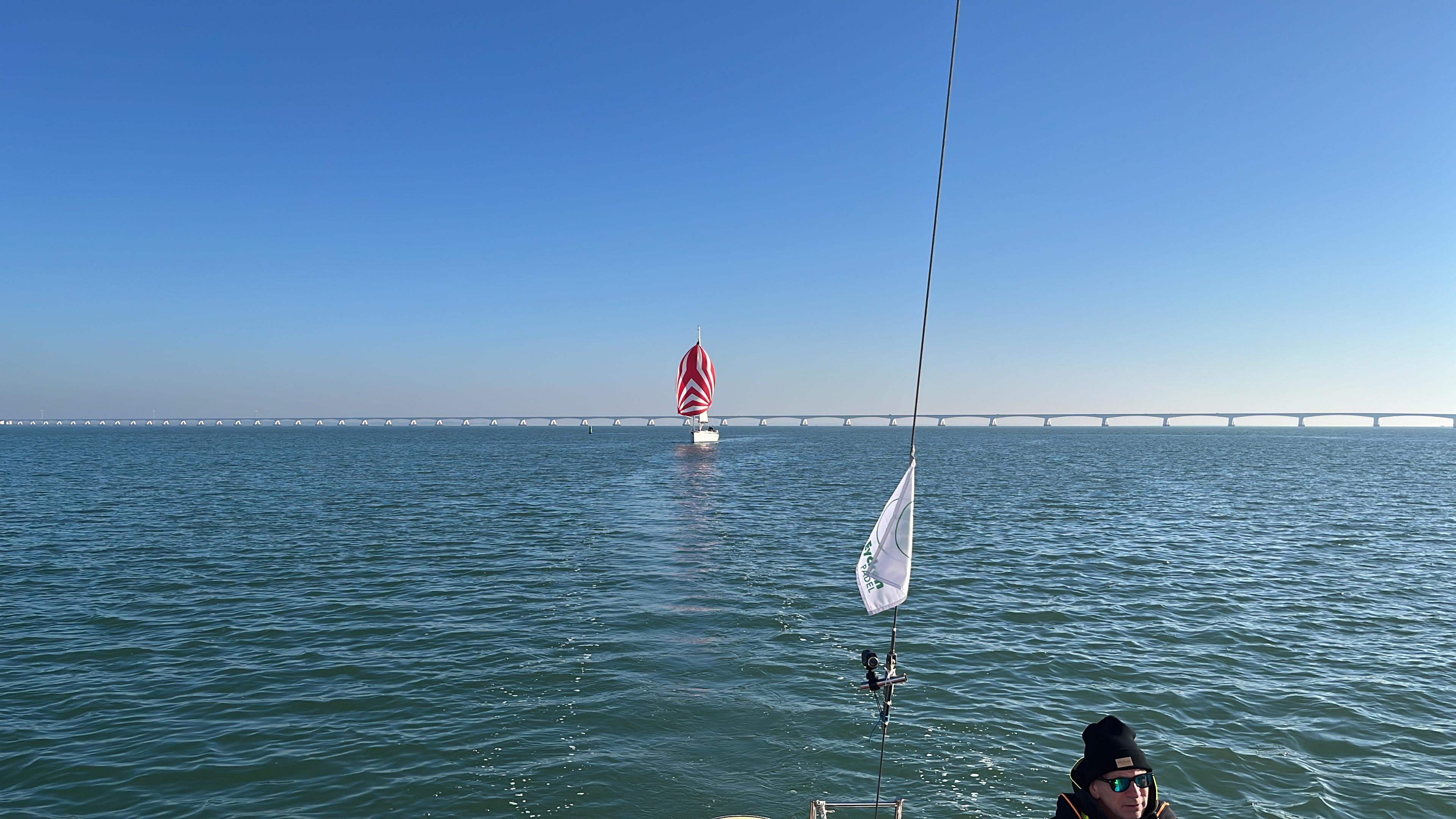 Vervolgens een spinnakerrak (voor de eerste keer getrokken ging goed) plat voor de wind op weg naar de R21. Vervolgens, na nog even R28 gerond te hebben, opkruisend naar het westen om vervolgens de spi weer te kunnen trekken na de R15/SvC richting de Zeelandbrug.