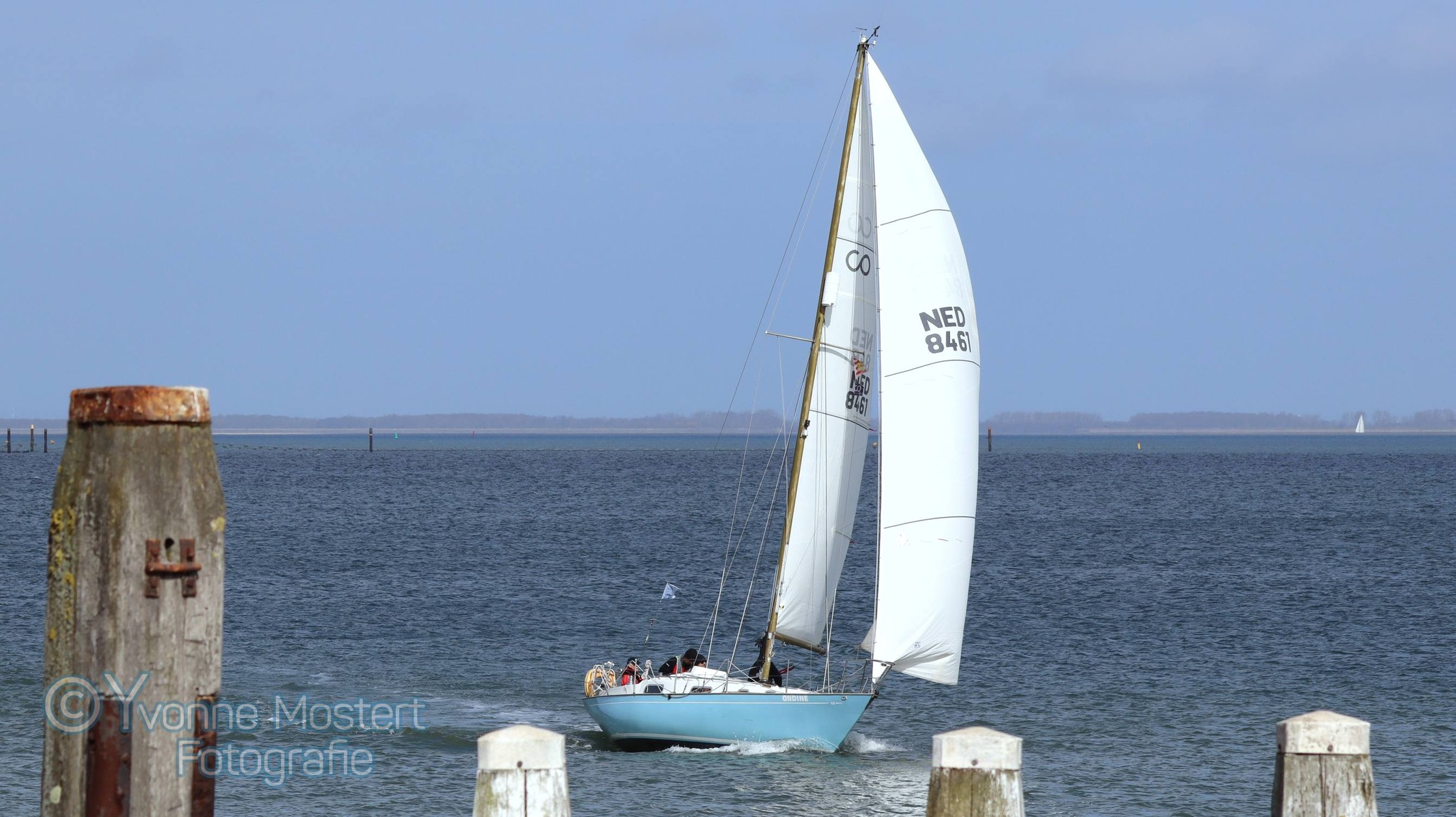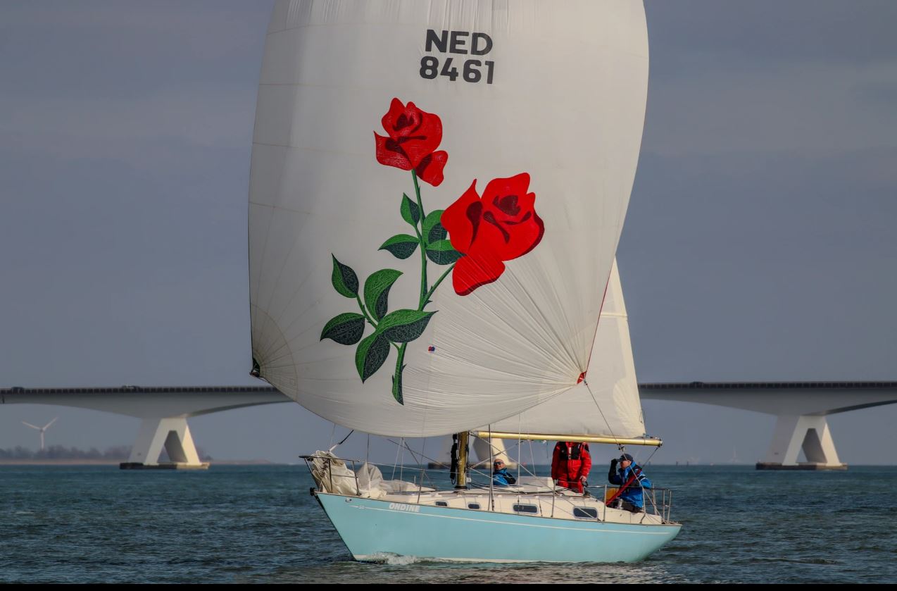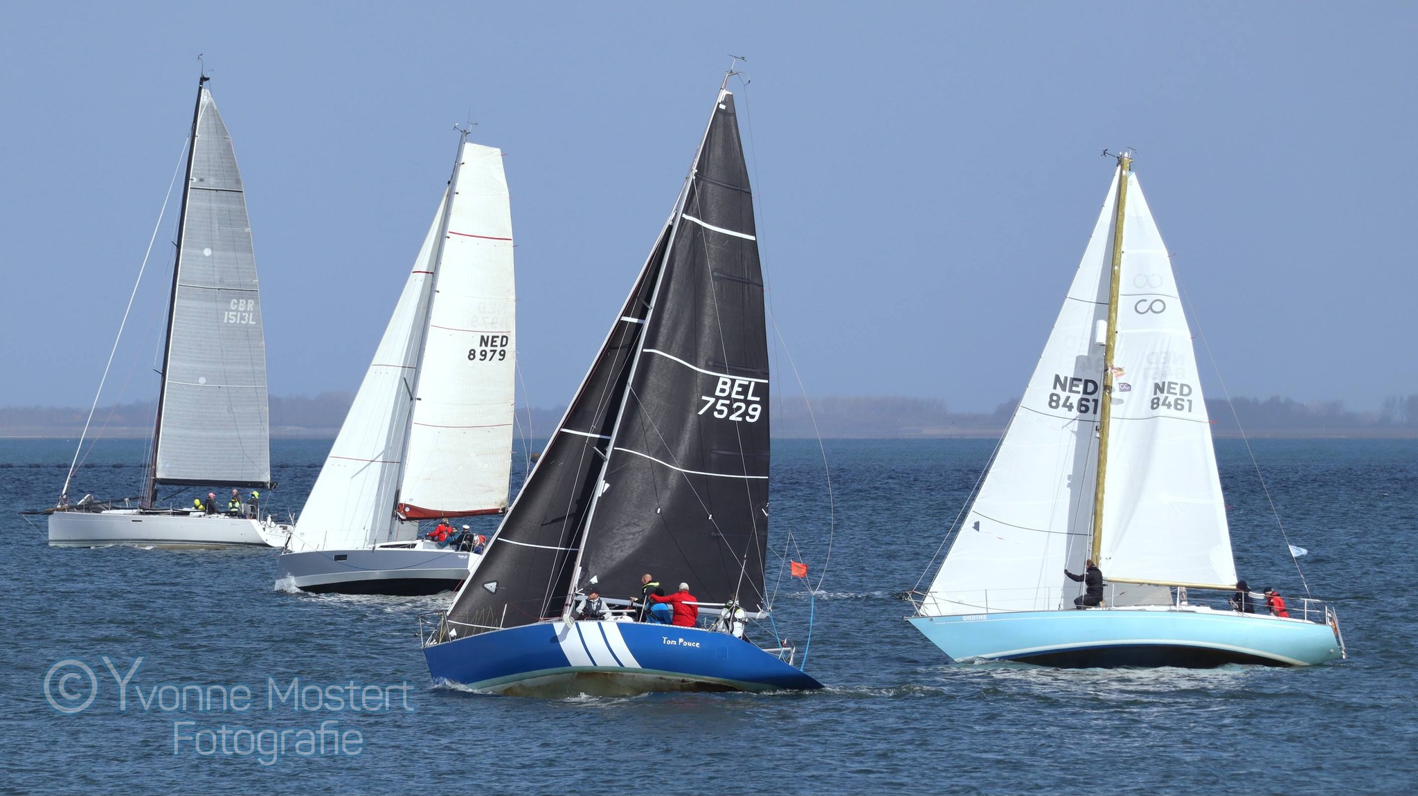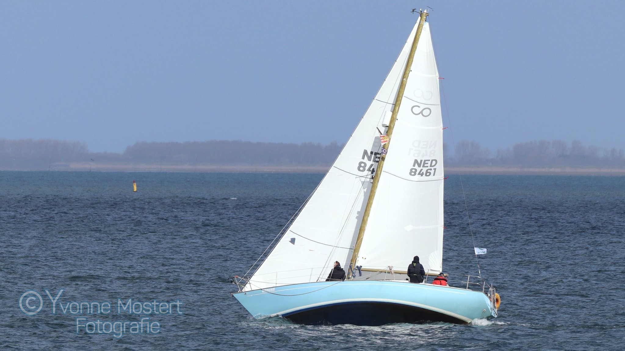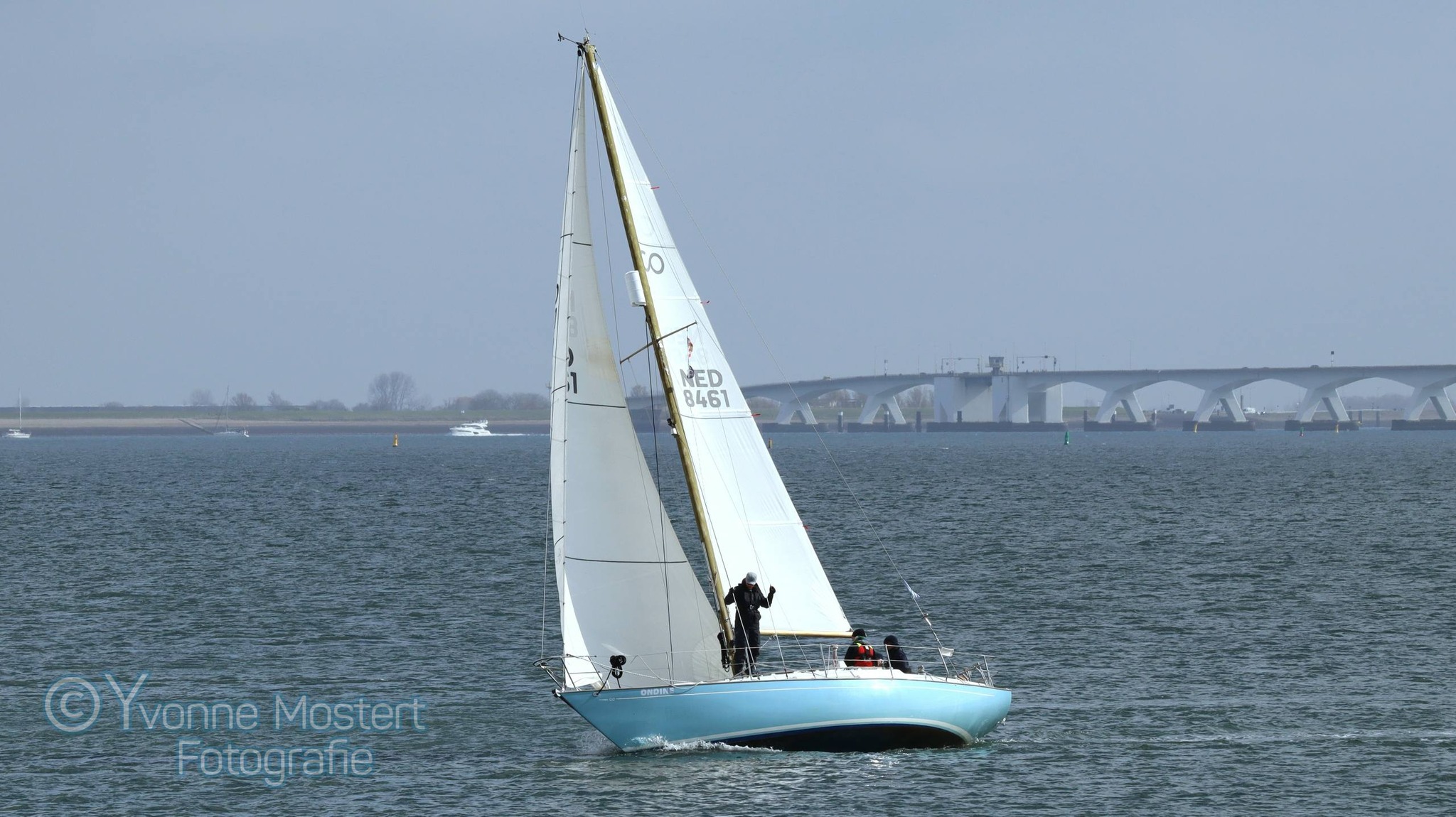 7 april, de laatste winterwedstrijd van dit seizoen. Weersvooruitzichten zijn goed, zonnig, aangename voorjaarstemperatuur en wind 8-10 knopen. Dit keer alleen de Ondine aan de start voor wat betreft de Contessa’s. Lecas staat op de kant voor een knip en scheer beurt. Start om 12:30 naar het oosten. Het is nog afgaand tij tot 15:00 uur. Onze start is goed. Halve wind richting Zeelandbrug. Bij de scheidingston spi op richting Zierikzee. We kunnen de koplopers redelijk bijhouden. Bij de SvZ1 gijpen en richting de Hammen. Iets minder wind, dus we proberen af te kruisen om toch wat snelheid te houden. Bij de H7 spi drop en aan de wind terug (tegen tij dus). De wind is weer wat aangetrokken en we lopen gelijk op met de Spotgaai, Boeboe en de Hygieina. Terug op de Oosterschelde bakboord uit, richting Roompot. Aan de wind, zonder een slag te hoeven maken. Bij de bovenboei door de wind en nu halve wind richting laatste boei, SvC11. De wind is helaas zuid gebleven, dus geen spi rakken meer in het vooruitzicht. Er is weinig wat we kunnen doen om plaatsen goed te maken. Juist bij het ronden van de SvC11 worden we ingelopen door de Willem Barents, een Hanse 461, die ons even uit de wind zet. Dit kost ons net één plaats in de uitslag van die dag. We eindigen als 5e in onze klasse, 23 sec achter nr. 4! Windhapper, Dehler 25. Toch een heerlijke zeildag.