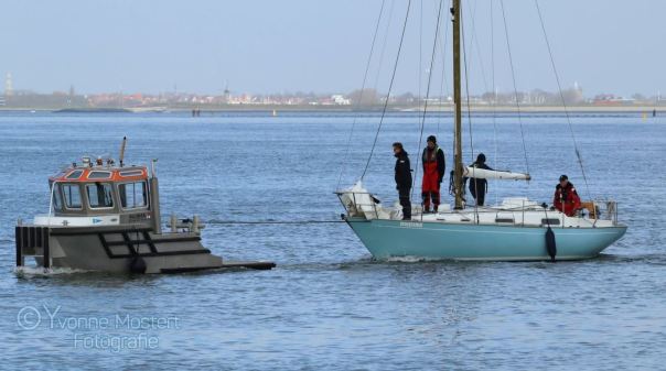Vandaag de laatste wedstrijd van het seizoen. De windvoorspelling is niet ongunstig. ZZW 11-13Kn, temp. > 10 gr.c. Helaas zijn we vandaag onderbemand. Joost en Johan hebben andere verplichtingen en Lien is ziek. We zijn dus maar met 4 personen, Koert, Michiel, Alexander en Izaäk. Om 10 uur proberen we de motor even te starten zoals gebruikelijk, maar…. slechts een paar tikjes en geen actie. Defecte startmotor? We hebben geen tijd om te sleutelen, maar willen wel heel graag gaan varen. Dus besluiten we de Ondine met behulp van de Kalik 33 Dol-Fyn van Koert naar de havenuitgang te slepen. Daar aangekomen vragen we aan de bemanning van de Zilt of we langszij mogen en of ze ons straks mee naar buiten willen nemen. Dat is geen probleem. Buiten gekomen gooien ze ons los en hijsen we de zeilen.