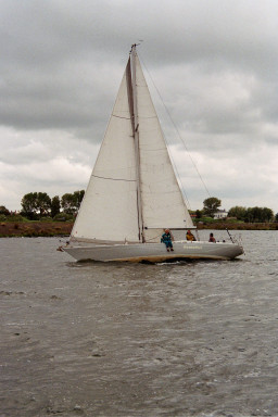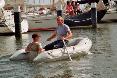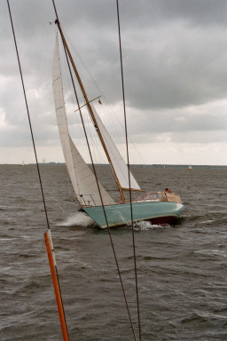 Helaas hebben er enkele inschrijvers moeten afzeggen. De opkomst: 7x Contessa 32, 1x Contessa 28 (Nieuwe gezichten, de “Kikeris” was er niet eerder bij) en 1x Contessa 38 (De “Pantoffel” is gelukkig gisteravond laat toch ook nog gearriveerd.) Ook zijn er nog een paar leden zonder boot, zij gaan mee als bemanning, ook gezellig. Om 10:00 uur briefing Er is besloten dezelfde baan te varen als vorig jaar, maar nu slechts één maal en in tegenovergestelde richting. Windverwachting 4 á 5 bft West. Beter kunnen we het ons niet wensen! De grote vraag: welke zeilen gaan we voeren. Ik besluit genua 1 te voeren en het grootzeil wat te reven. Aán de wind zou genua 2 net zo rendabel zijn, maar dan zouden we met halve wind en voor de wind in het nadeel zijn. Wij zijn eigenlijk echte tourzeilers, maar als er een wedstrijd wordt gevaren wil je er toch alles uit halen. We zouden met deze bemanning ook de spinaker kunnen voeren, maar daarvoor ontbreekt de routine. Zeker met deze winstverwachting zetten wij dat uit ons hoofd. Het tijdstip van de start wordt bepaald door de laatst aankomende, het blijft tenslotte een gezelligheidswedstrijd. Ook Jaqueline moet nog even worden binnengeloodst (met haar auto) met behulp van de mobiele telefoon. Wij hebben een goede start, als tweede na de “Brasted IV” gaan we over de startlijn. Al snel blijken we wel de snelheid te hebben, maar niet zo hoog kunnen varen als enkele van de schepen die na ons de startlijn zijn gepasseerd. We ronden als 5e de bovenboei. De Pantoffel is uiteraard sneller, de “Ithaka” en later ook de “Lecas” hijsen wel de spinaker, die kunnen we dus wel vergeten. Onze directe concurrent is de “Methula”. Het rif gaat uit het grootzeil en wij voeren een groter voorzeil, dus ik heb het idee dat we sneller lopen, maar hun voorsprong is al te groot om het ze echt lastig te kunnen maken. De wind lijkt iets af te nemen, dus we hoeven gelukkig dus niet opnieuw te reven. We hebben duidelijk meer snelheid dan de “Methula”, maar evenals in het begin van nde wedstrijd lopen zij veel hoger aan de wind. De laatste mijlen voor de finish besluiten wij andere slagen te maken, zodat een eventuele plotselinge windshifting in ons voordeel zou kunnen werken. Even lijkt het erop dat het ook gebeurd, maar niet voldoende om ons eerder aan de finish te brengen. Zo blijft het tussen ons spannend tot op het einde. De “Ithaka” zeilt een prima race en eindigt zelfs voor de “Pantoffel”! Ook de Kikiris heeft het prima gedaan en weet zelfs twee 32fts achter zich te houden. De zon blijft schijnen en henk heeft iets nieuws bedacht nl een roeiwedstrijd in de haven. Twee laden van onze vereniging hebben hun Zodiac beschikbaar gesteld. Van elk schip moet één bemanningslid roeien en één meevaren als ballest. Hier blijkt dat de meesten van ons gelukkig de kunst van het roeien toch nog machtig zijn. Er groeit nu een hele generatie jeugdigen op die gewend zijn een lawaaiig buitenboordmotortje aan te trekken en er soms op uit gaan zonder peddels of roeispanen, met alle kwalijke gevolgen van dien, als de benzine op is, of de motor valt uit in storing. Wij zetten in de eerste run een tijd die niet meer wordt verbeterd zodat we in het gecombineerde klassement (zeilen/roeien) opklimmem naar de 3e plaats. “Ithaka” doet het ook goed en blijft 1e algemeen. Ook Henriëtte van de Pantoffel staat haar “mannetje”en blijft 2e. Enkele roeiers vergeten kennelijk dat een Zodiac geen kiel heeft en kan verleieren door de verraderlijke wind dwars op het vaarwater. Zij gaan een gevecht aan met de palen van de boxen, wat ze natuurlijk altijd verliezen. Henk gooit in de laatste run al zijn krachten in de strijd en breekt helaas een roeidol.