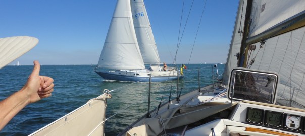 Tegen de Ondine is dat een oneerlijke strijd. Daar is immers Christophe aan boord die extra is overgekomen van Isle of Whight om met de Ondine mee te racen! (Christophe gaat in the Solent wedstrijden varen en komt dan later dit jaar met zijn tot in de puntjes opgeknapte Lecas weer naar Colijnsplaat).